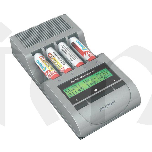 Charge Manager nabízí 410 tři optimalizované nabíjcí produdy a jeden vybíjecí proud pro NiCd a NiMH akumulátory. NiZn akumulátory nabíjí a vybíjí automaticky přizpůsobeným proudem. Jakmile se vyberou nabíjecí proudy, následují postupně další kroky nabíjení. Proces nabíjení nebo vybíjení je řízen mikropočítačem, nezávisle na stavu nabití akumulátoru. Díky jednoduché obsluze je nastavení dílem okamžiku. Jakmile jsou nabíjecí programy ukončeny, přepne se nabíječka automaticky do úsporného módu. Stav akumulátorů se však nadále sleduje a v případě potřeby je zahájeno udržovací nabíjení. Charge Manager 410 je možné napájet i z 12V adaptéru (není součástí dodávky).