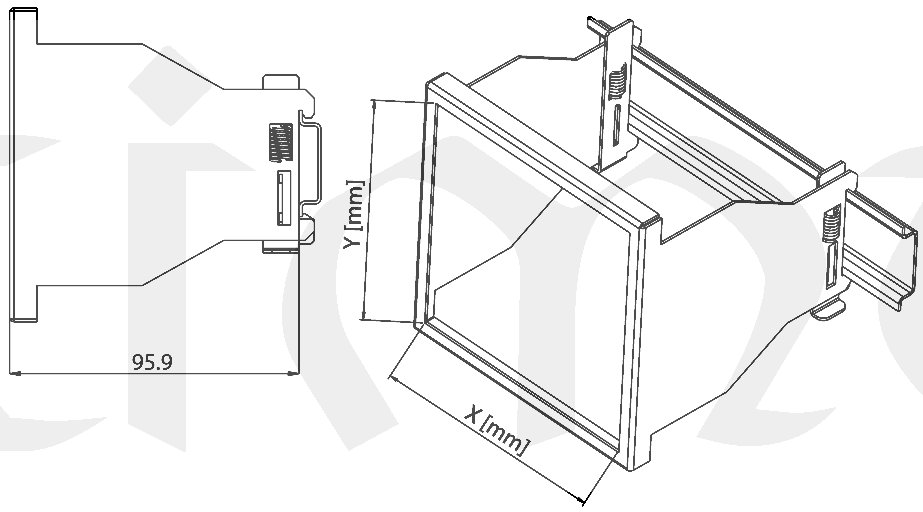 Adaptér ATS1 pro uchycení rozvaděčových přístrojů rozměru 96x96 na DIN lištu TS35