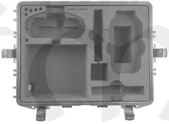 Kufřík s pěnovými vložkami se štěrbinami, rozměry: 590 x 470 x 270 mm; hmotnost cca 6kg