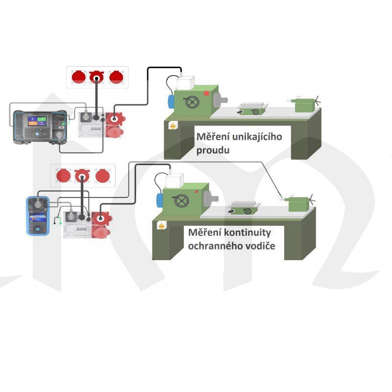Umožňuje rychlé a efektivní aktivní měření unikajících proudů pomocí testovacích přístrojů primárně navržených pro testování jednofázových elektrických zařízení.