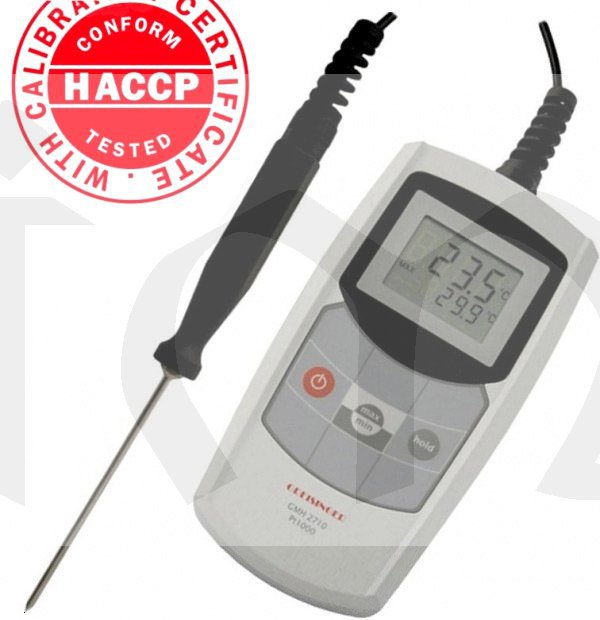GMH2710-E - teploměr HACCP  včetně zapichovacího snímače Pt1000, 2-vodič, izolovaný, vodotěsný a parotěsný,